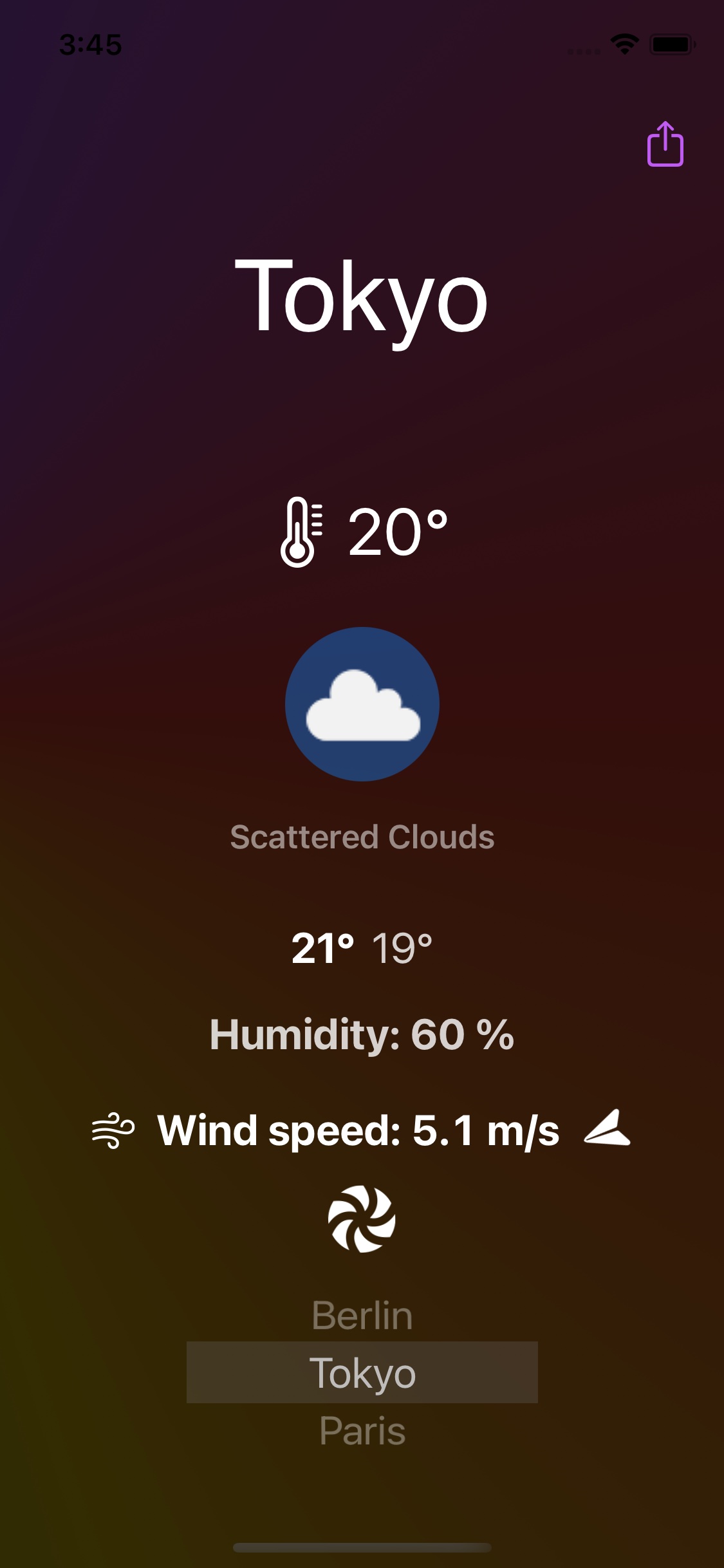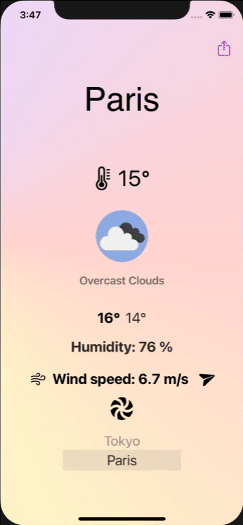 A weather app using the openweathermap RESTful API and displaying the weather for different cities in a customisable picker. The app is entirely written in SwiftUI without external libraries.