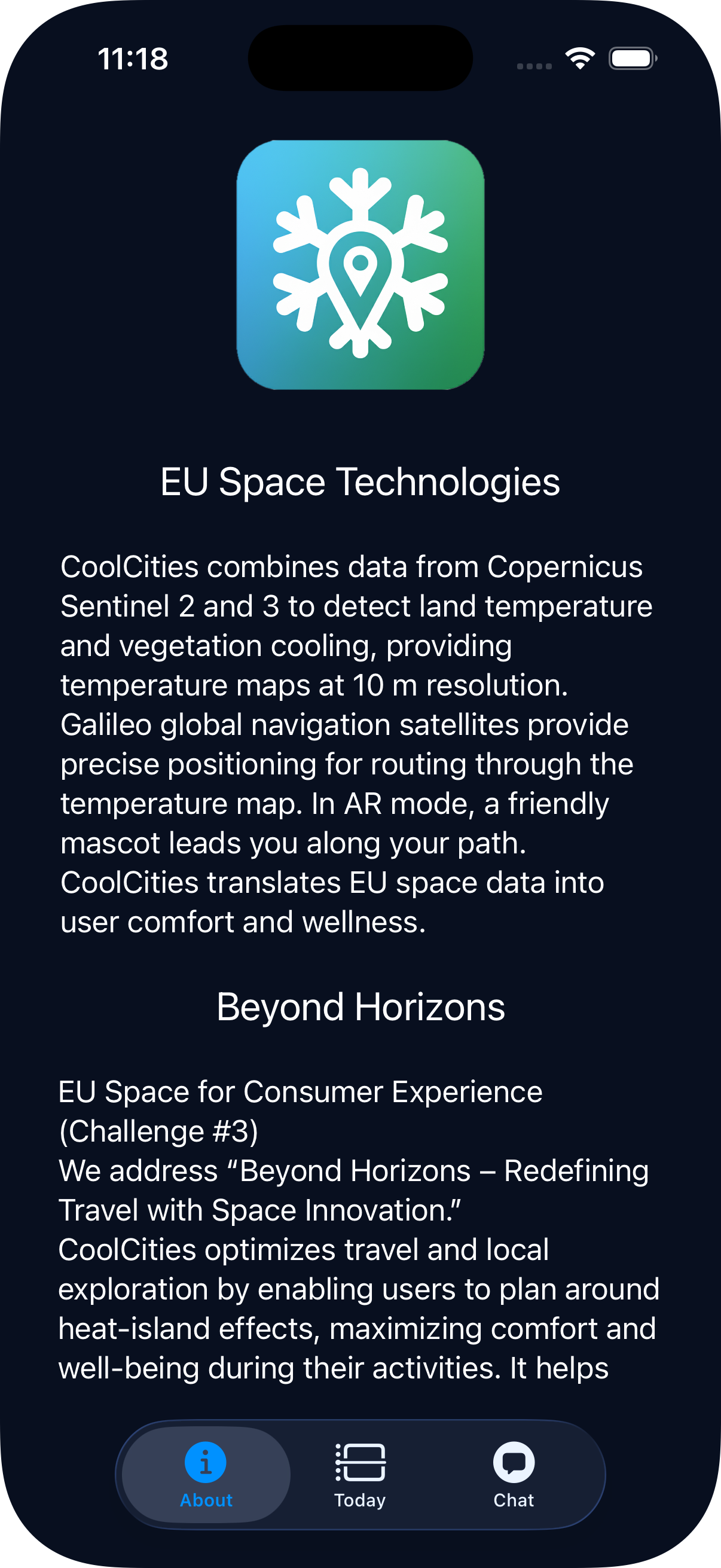 CoolCities combines data from Copernicus Sentinel 2 and 3 to detect land temperature and vegetation cooling, providing temperature maps at 10 m resolution. Galileo global navigation satellites provide precise positioning for routing through the temperature map. CoolCities translates EU space data into user maps.